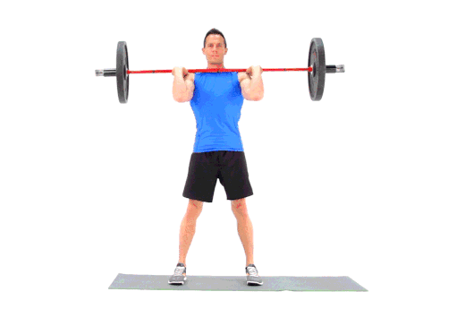 步骤:和背部的杠铃深蹲没有什么区别,除了把哑铃放在了胸前外,手肘指向地面。如果在没有办法使用杠铃的时候,也可以用哑铃来替代。身体下降时,尽量让手肘接触膝盖,但是不用触碰膝盖。
