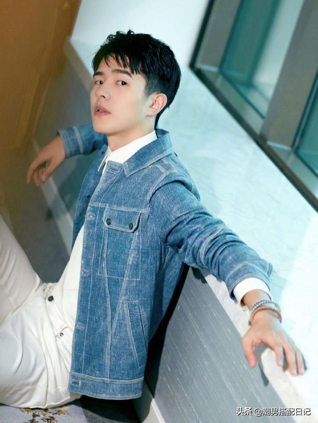刘昊然身穿牛仔外套搭配白色休闲裤,太帅气