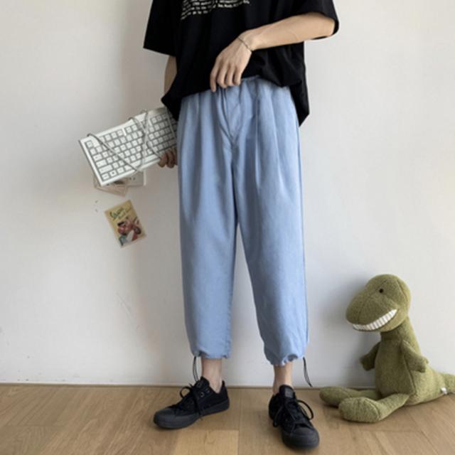 偏宽松的版型设计结合束脚收口的处理,呈现上宽下窄的效果赋予显瘦的功能性体验。运用工装风诠释硬朗风格,同时成熟节奏彰显惬意享受,腰部纽扣门襟设计加持,使得穿着体验者不易产生勒紧感。