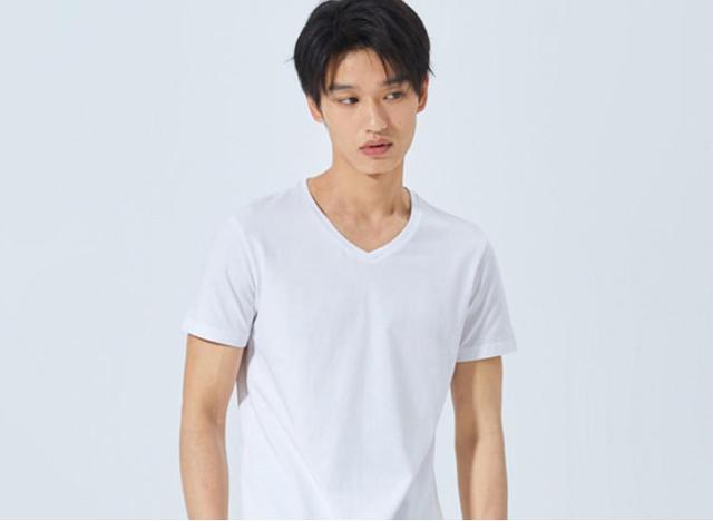 在男士T恤中,V领并不像圆领那样常见,但是这并不代表V领没有自己的地位。V领的领口呈V字型,开口向下,可以在视觉上延伸颈部线条,使颈部看起来更修长,看起来人也更显高。